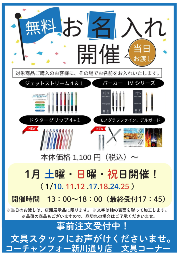 コーチャンフォー新川通り店にて、無料お名入れイベントを開催いたします!