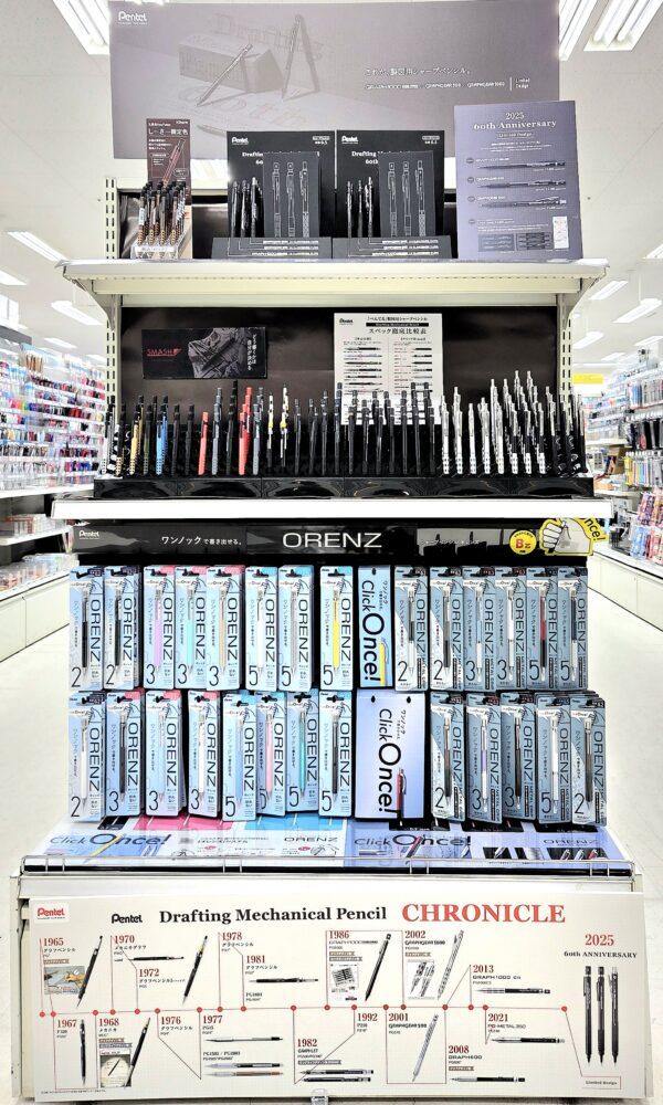 現在コーチャンフォー旭川店では、ぺんてるの製図用シャープペンシル発売60周年記念商品を展開しております。