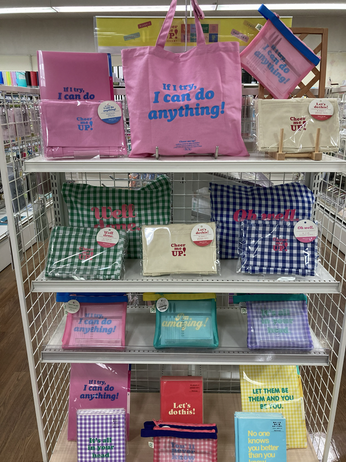 カラフルで元気な配色のノートやポーチ、トートバッグは気持ちを